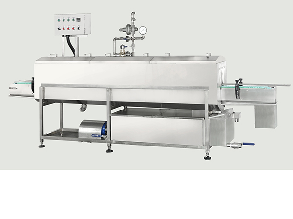 本機適用於人工充填或成品外部沾有油漬於殺菌前將外部瓶身洗滌乾淨,以達到殺菌區內無油漬及殘渣。